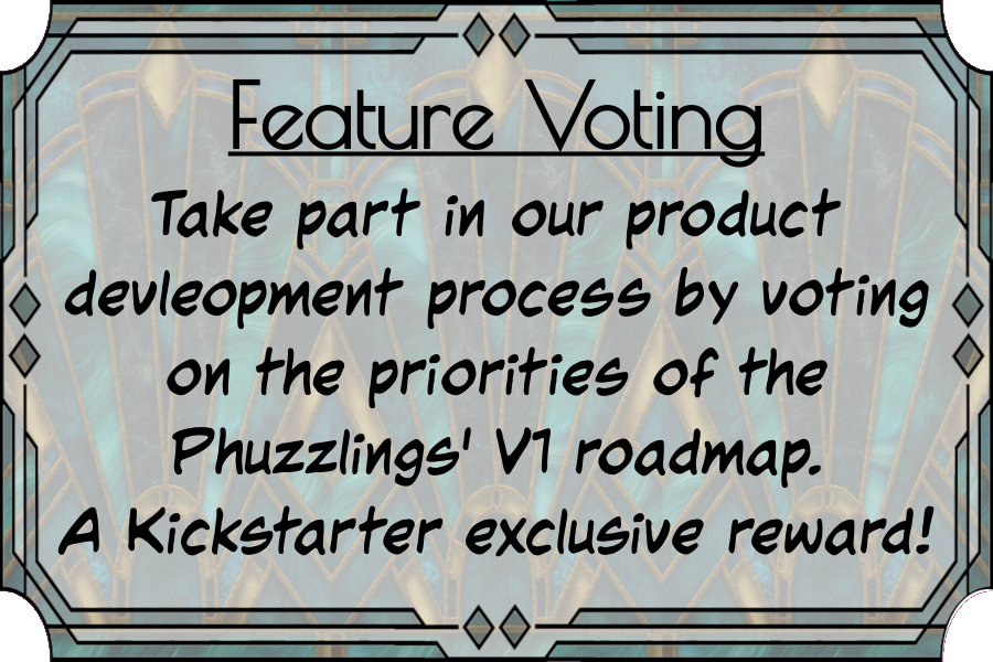 These are the benefits for Phuzzlings’s KickStarter backers. The different reward tiers include different sets of these benefits.